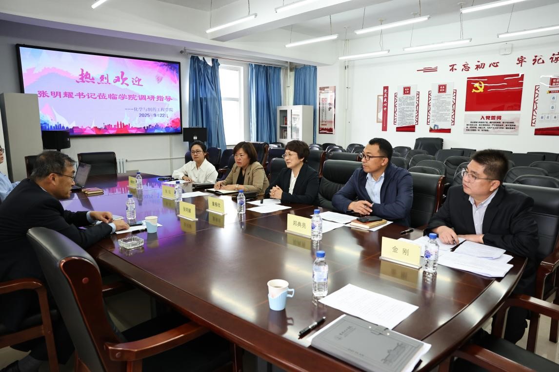 2025年9月22日下午,学校党委书记张明耀同志莅临化学与制药工程学院开展调研工作。调研内容包括走访实验室,听取学院工作汇报,与学院班子成员座谈等三个环节。